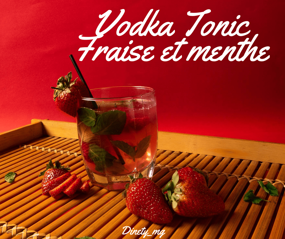 Je verse le tout dans 2 verres. A ce moment là, je sors les glaçons et je les place dans les verres. J’allonge finalement le tout avec le Tonic. Je sers immédiatement. Pour les amateurs de décoration, vous pouvez mettre une branche de menthes et ses petites feuilles sur les rebords du verre. Une autre idée serait aussi de couper une fraise en deux et faire une entaille pour qu’elle puisse tenir sur le verre.