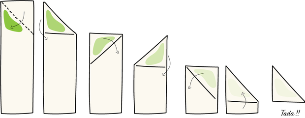 A partir de là, vous pouvez utiliser la farce de votre choix sur un coin de la pâte. Procédez au pliage comme indiqué plus bas.